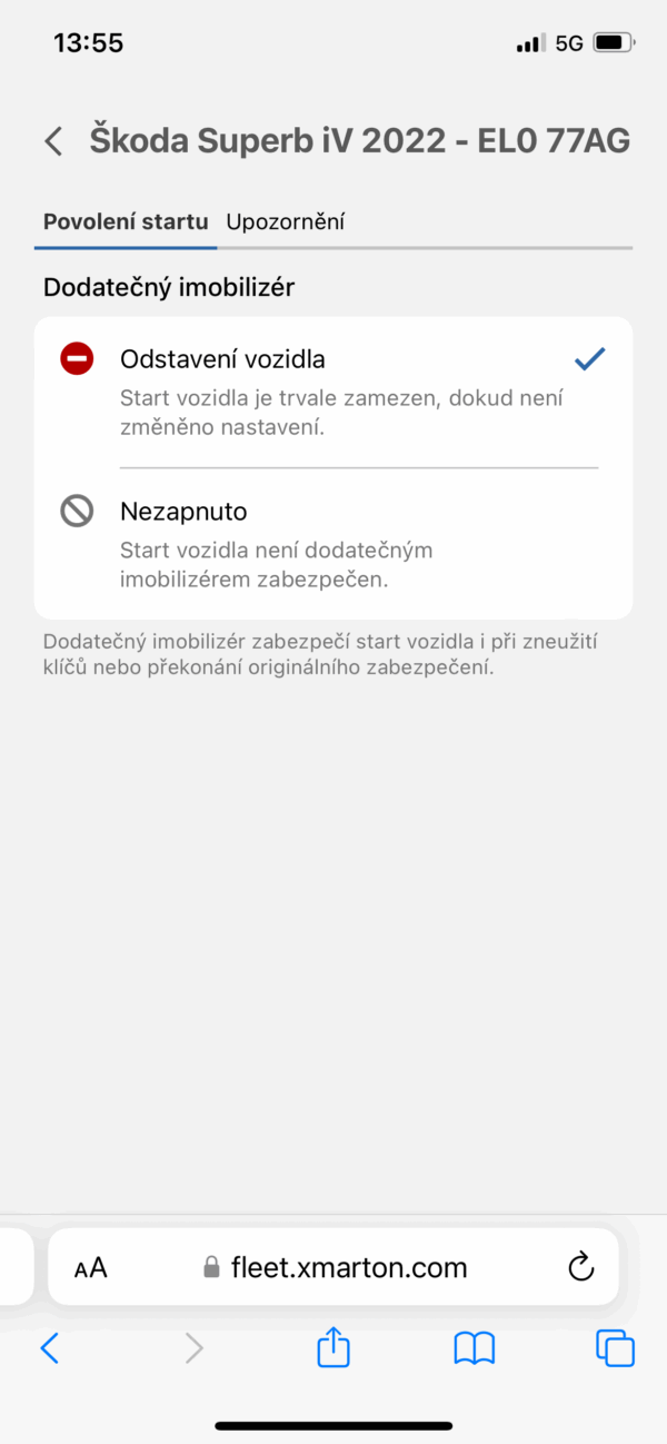 ZOBRAZENÍ STAVU ZABEZPEČENÍ VOZIDLA